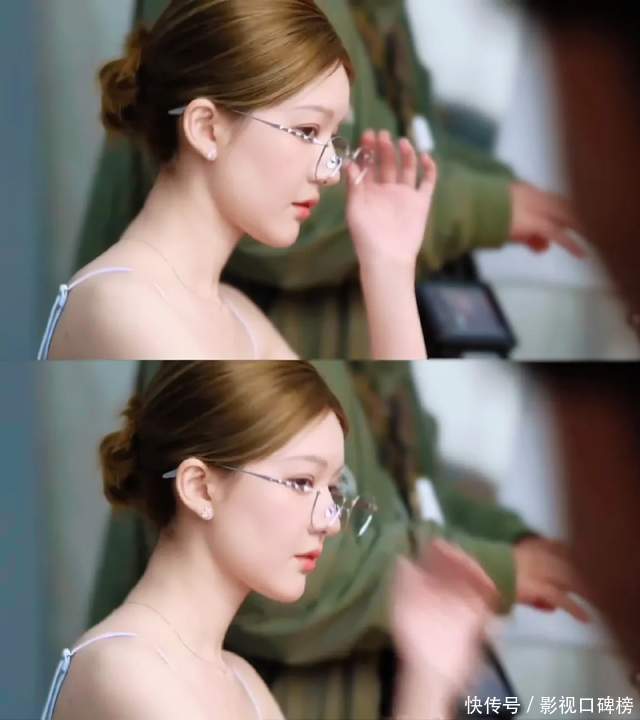 举个例子,有一个片段真的看得叫人啼笑皆非哭笑不得。赵露思工作时坐在小茶几面前,对着面前的一沓稿纸,一会奋笔疾书,一会在电脑跟前同时做着记录,她的眼镜架在鼻子尖上,拍照很好看,很纯欲风,但不知道的还以为是老花镜。能看得出来,赵露思就是想营造出来知性女的迷人形象,无边框眼镜很能彰显高智感。可叫正常的人看来,这不过是她设计的一个极为做作的“超绝不经意”动作。
