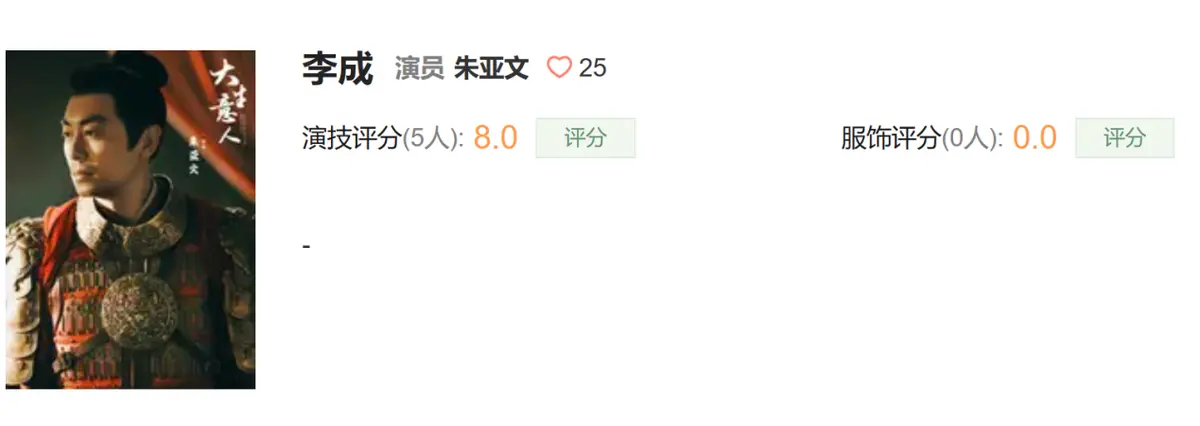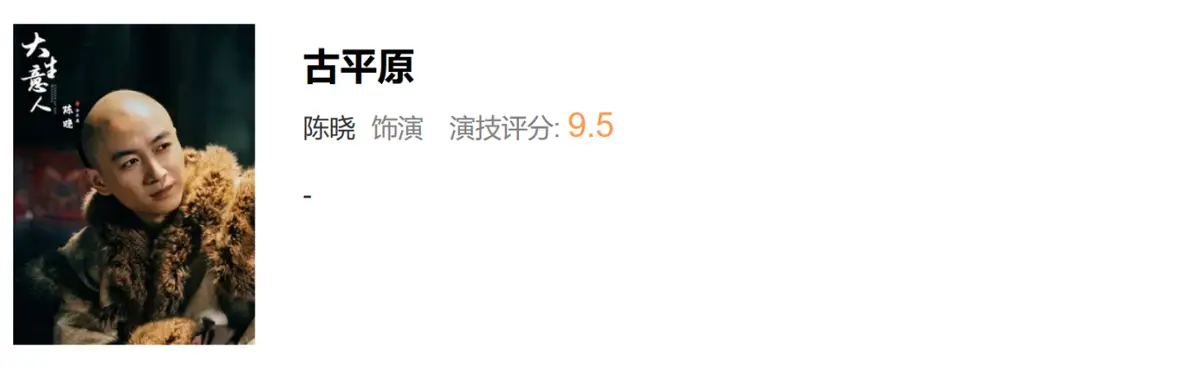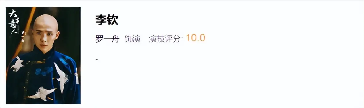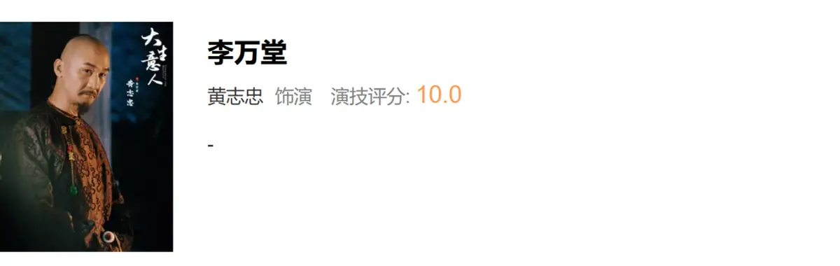 一个老戏骨也是古装剧质感的压舱石,黄志忠获得10分的演技评分,毋庸置疑。