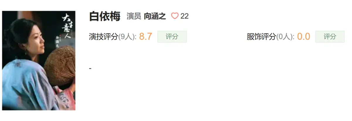 但向涵之演技评分仅有8.7分,看来还是没有打破观众对年轻流量演员的刻板印象,希望以后她可以用更多角色和作品证明自己吧。