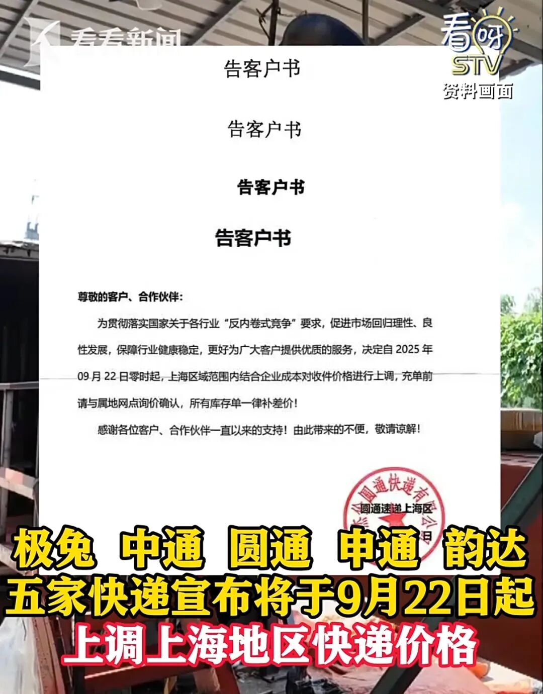 专家指出,此次五家快递企业上调上海地区快递收件价格,涨幅与之前福建、湖南、江西、天津等多地调价幅度基本持平,将有望促使行业从“以价换量”的低水平内卷竞争,转向“以质取胜”的高质量发展。